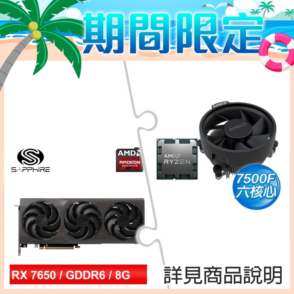 ☆期間限定★ AMD R5 7500F MPK+藍寶石 黑鑽版 RX 7650 GRE GAMING OC 8GB 顯示卡