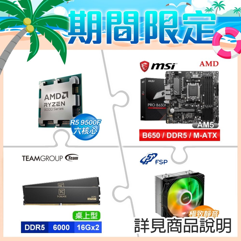 ☆期間限定★ AMD R5 9500F MPK+微星 PRO B650M-P M-ATX主機板+TEAM T-CREATE EXPERT DDR5-6000 32G(16G*2) CL30 記憶體《黑》 ★送全漢 NE5 ARGB 4導管 180W 單塔單扇 散熱器