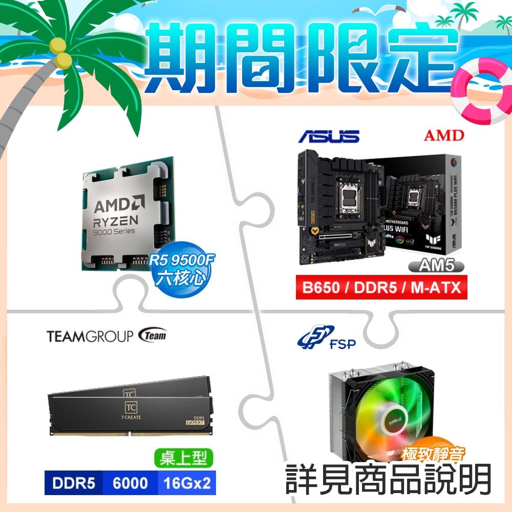 ☆期間限定★ AMD R5 9500F MPK+華碩 TUF GAMING B650M-PLUS WIFI M-ATX主機板+TEAM T-CREATE EXPERT DDR5-6000 32G(16G*2) CL30 記憶體《黑》 ★送全漢 NE5 ARGB 4導管 180W 單塔單扇 散熱器
