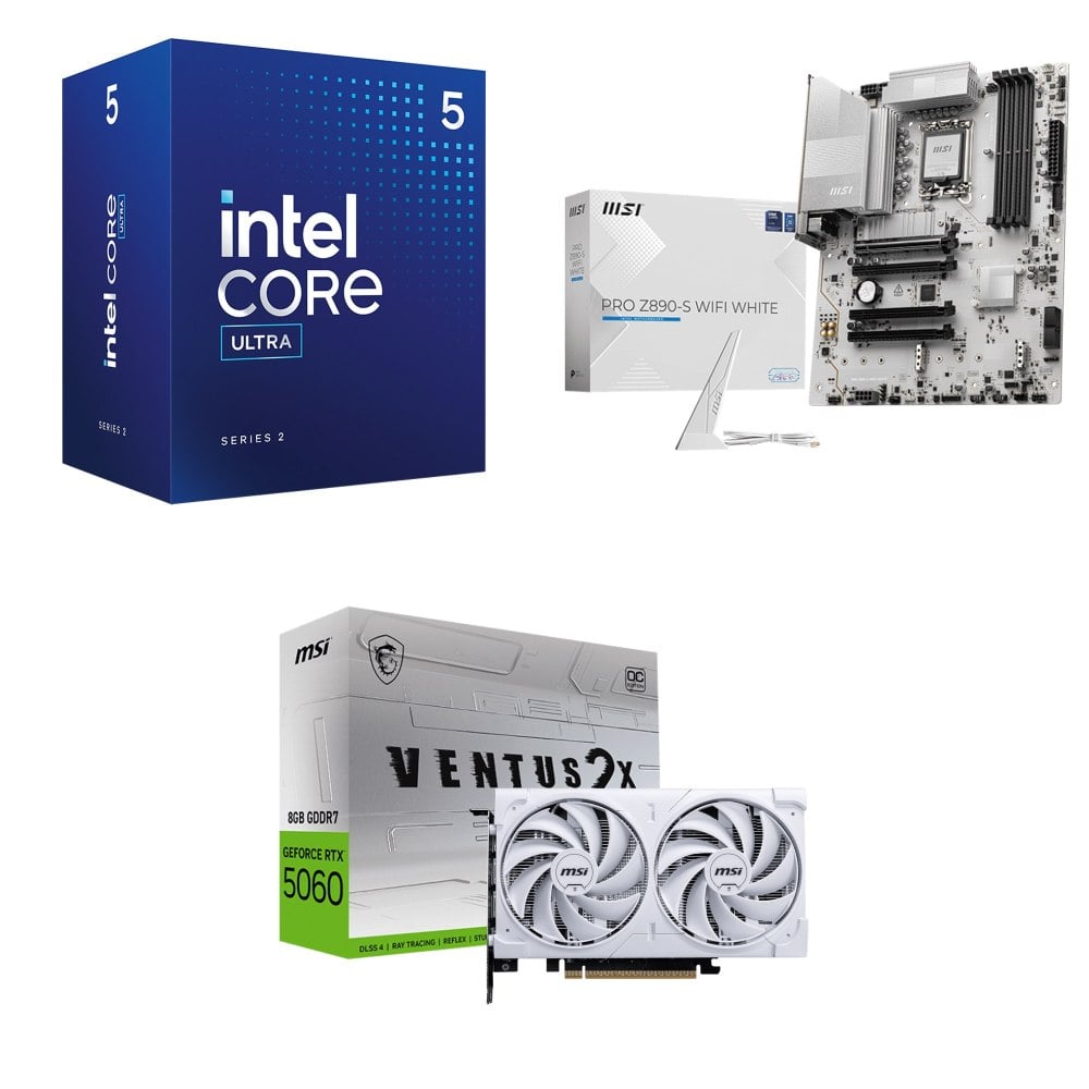 ☆期間限定★ Intel Core Ultra 5 225F+微星 PRO Z890-S WIFI WHITE D5 ATX主機板+微星 RTX 5060 8G VENTUS 2X OC WHITE 顯示卡