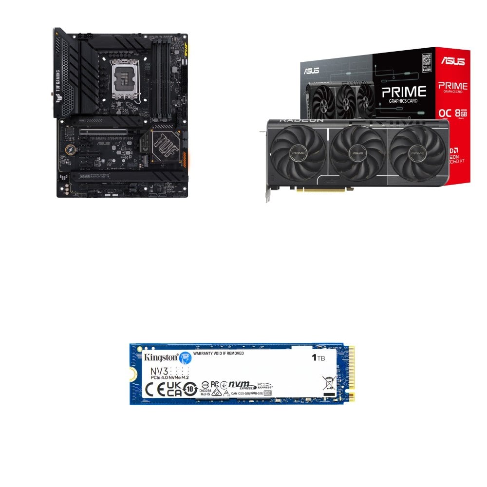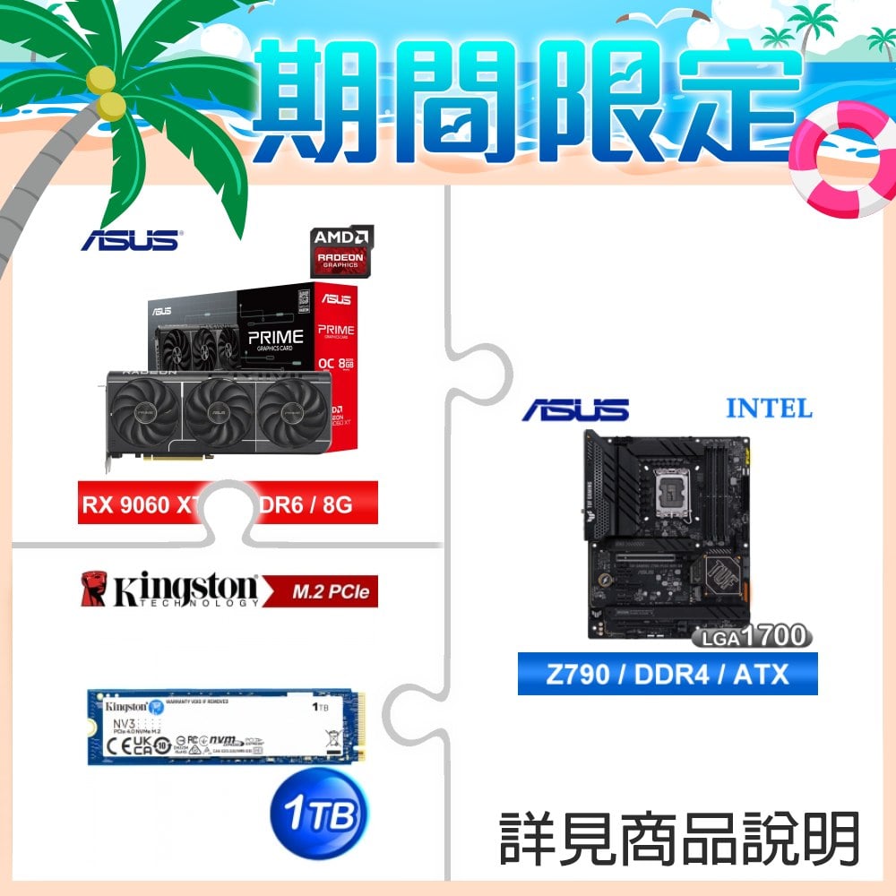 ☆期間限定★ 華碩 TUF GAMING Z790-PLUS WIFI D4 ATX主機板+華碩 PRIME-RX9060XT-O8G 顯示卡+金士頓 NV3 1TB M.2 PCIe 4.0 SSD