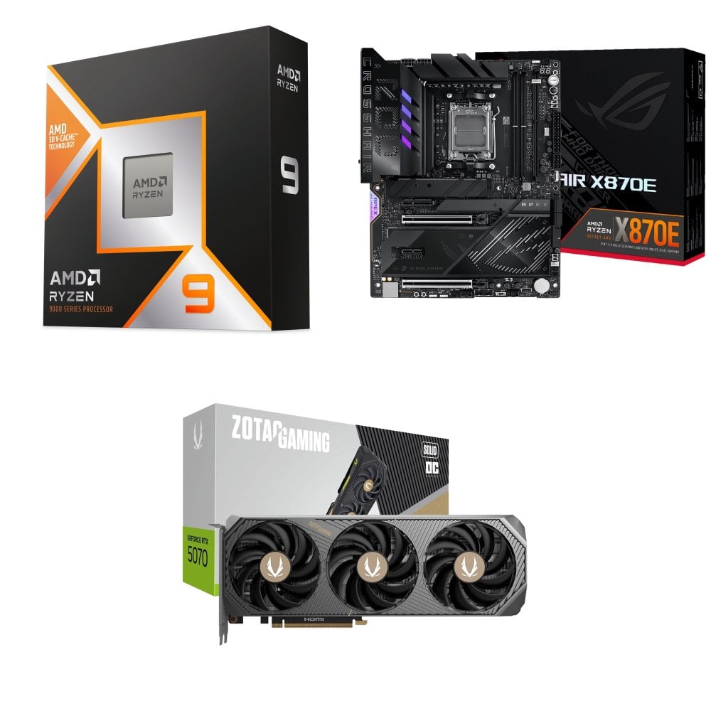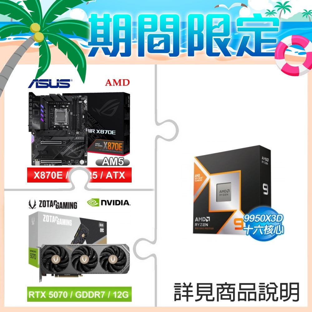 ☆期間限定★ AMD R9 9950X3D+華碩 ROG CROSSHAIR X870E APEX ATX主機板+索泰 RTX 5070 SOLID OC 12G 顯示卡
