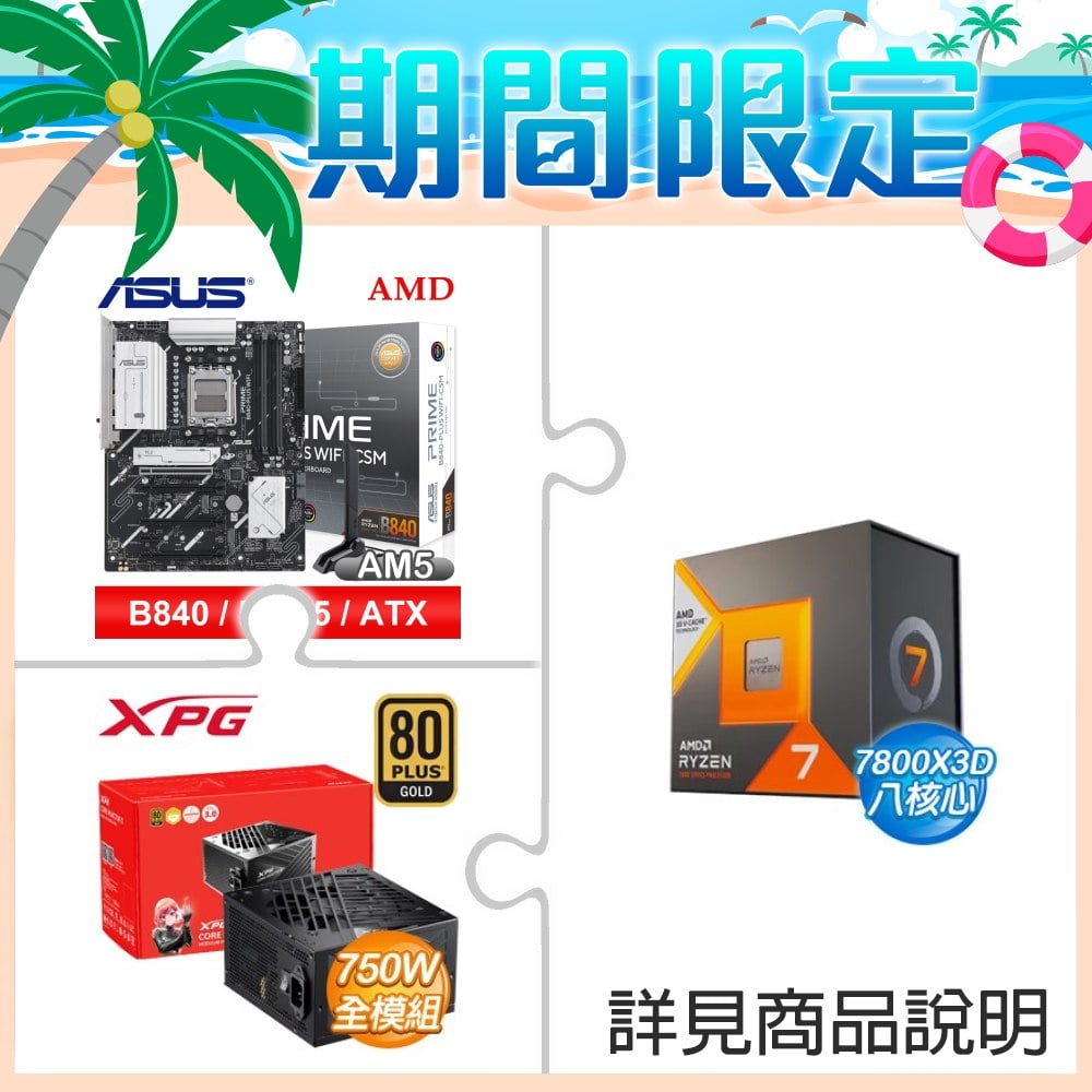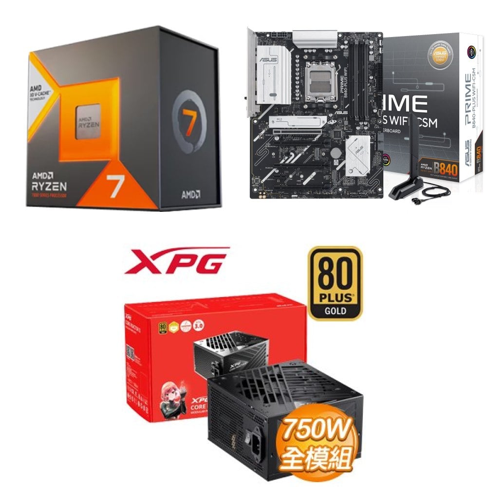 ☆期間限定★ AMD R7 7800X3D+華碩 PRIME B840-PLUS WIFI-CSM ATX主機板+威剛 XPG CORE REACTOR II 750W 金牌 全模組 ATX3.0電源供應器