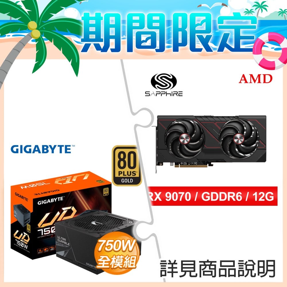 ☆期間限定★ 藍寶石 PULSE 脈動 RX 9070 GRE GAMING 12GB 顯示卡+技嘉 UD750GM 金牌 全模組 電源供應器