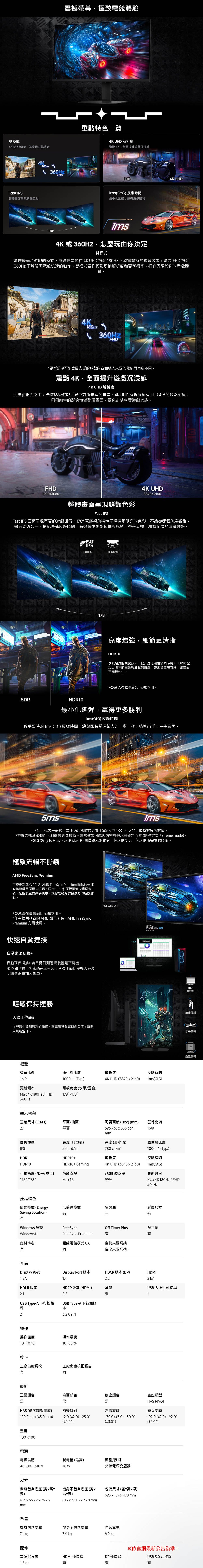 - 雙模式 4K 或360HZ