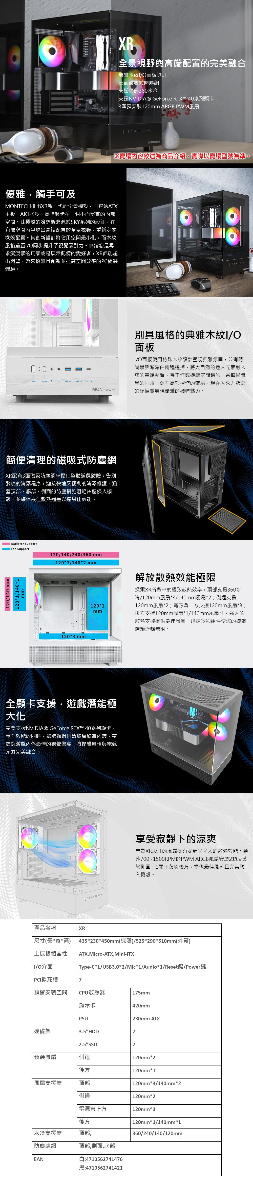 MONTECH 君主【XR】全景玻璃透側 ATX機殼《灰色》(顯卡42/CPU高17.5)