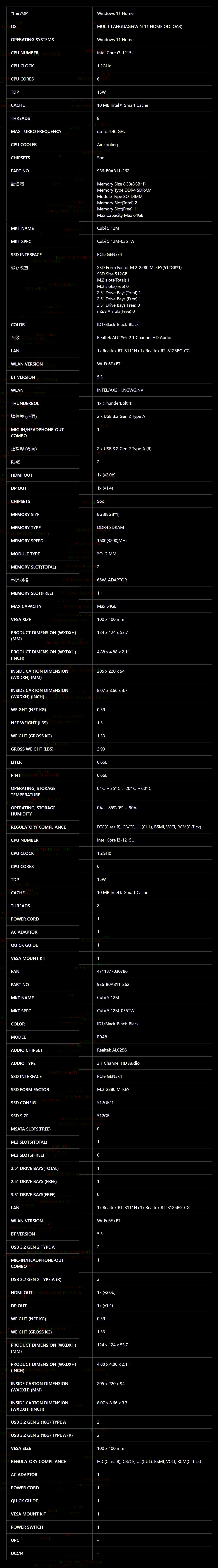 MSI 微星 Cubi 5 12M-035TW-B31215U8GS51X11MA 迷你電腦(i3-1215U/8G/512G SSD)
