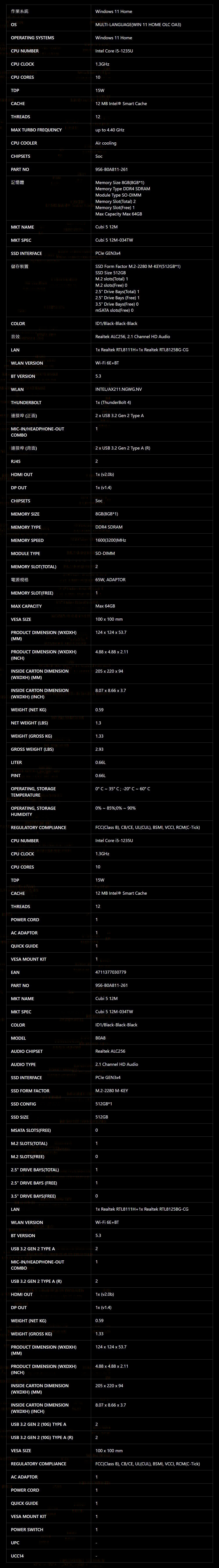 MSI 微星 Cubi 5 12M-035TW-B31215U8GS51X11MA 迷你電腦(i3-1215U/8G/512G SSD)