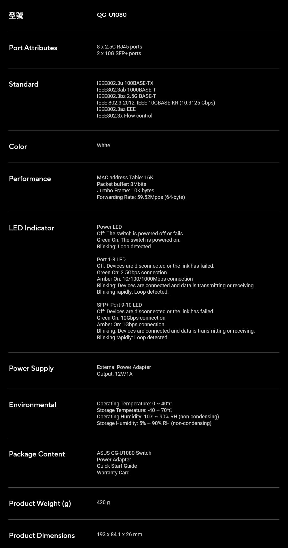 ASUS 華碩 QG-U1080 8埠 2.5G非網管型交換器
