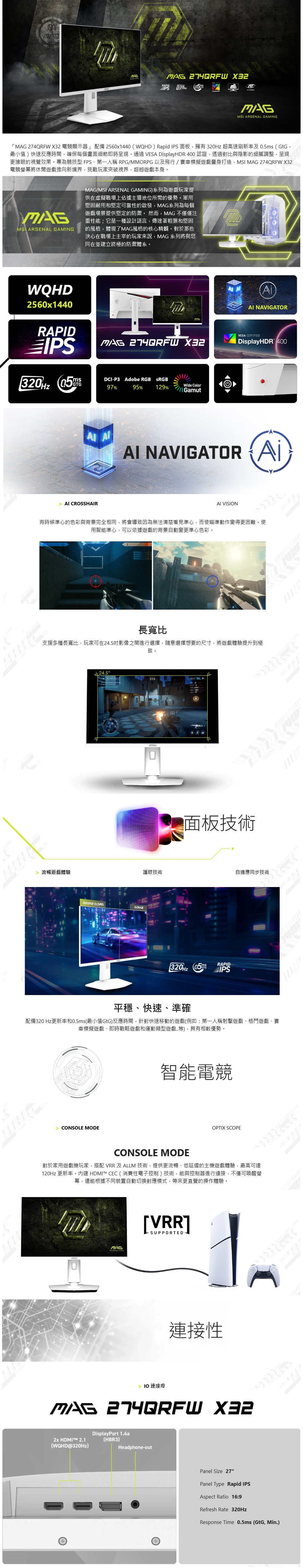 MSI 微星 MAG 274QRFW X32 27型 IPS電競螢幕