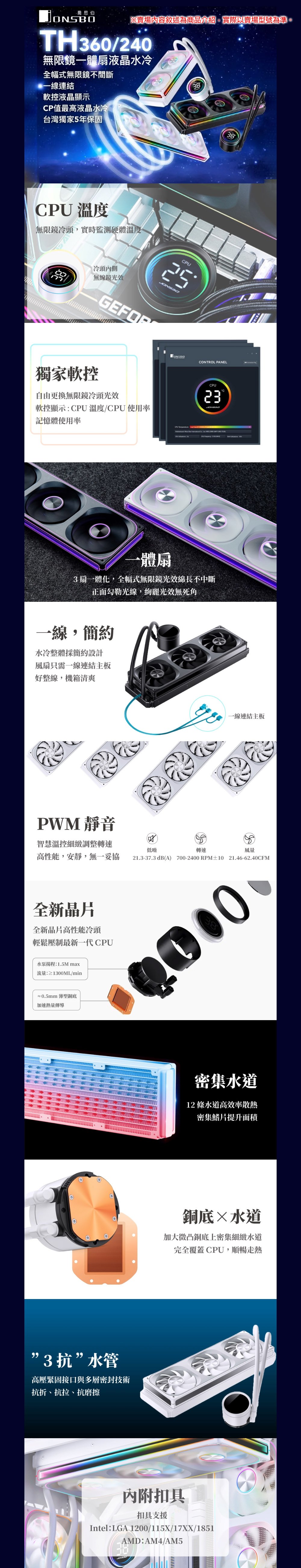 JONSBO 喬思伯 TH-360 白色版 液晶水冷散熱器(5年保)