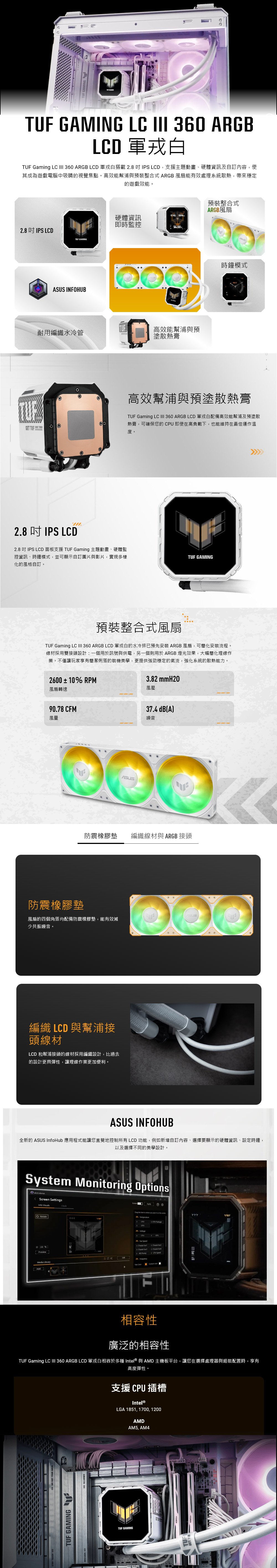 ASUS 華碩 TUF GAMING LC III 360 ARGB LCD WHT 水冷散熱器《軍戎白》(6年非人損漏液保換新)
