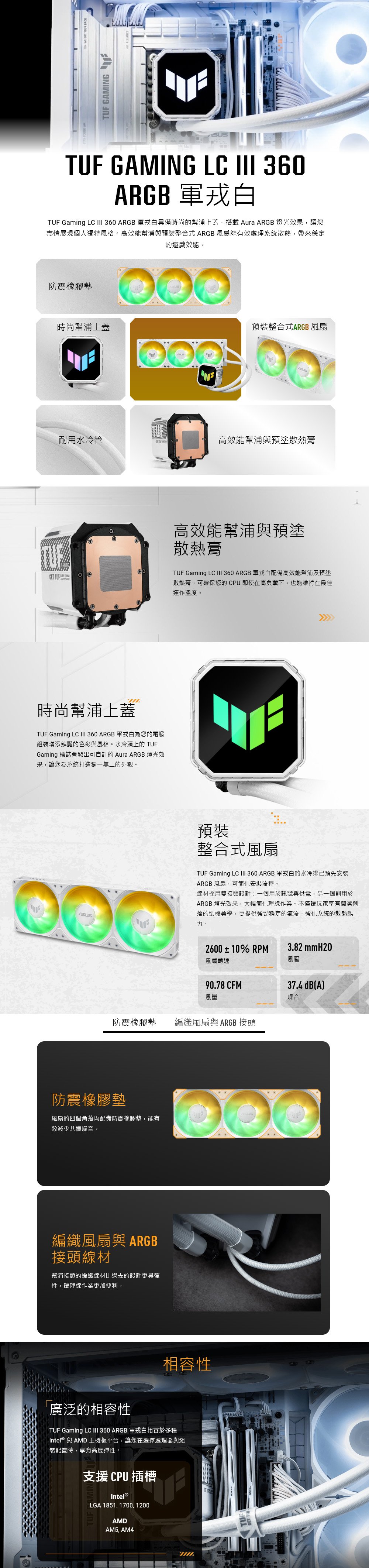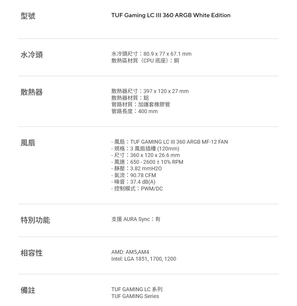 ASUS 華碩 TUF GAMING LC III 360 ARGB WHT 軍戎白 水冷散熱器(6年非人損漏液保換新)