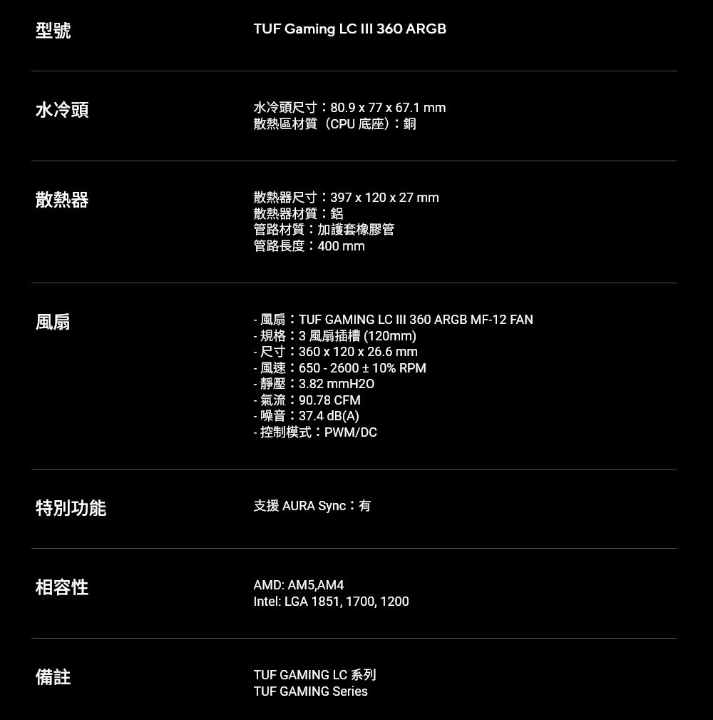 ASUS 華碩 TUF GAMING LC III 360 ARGB 水冷散熱器(6年非人損漏液保換新)
