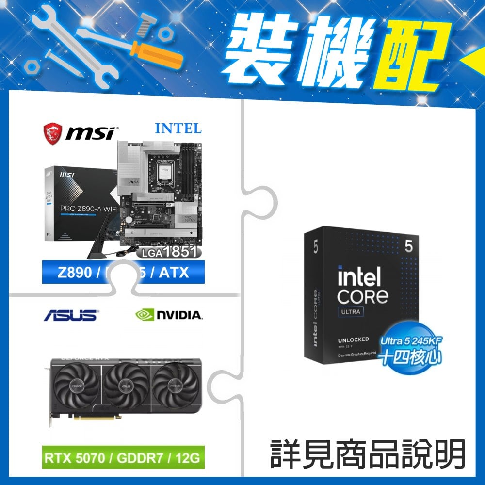 ☆裝機配★ Core U5 245KF+微星 PRO Z890-A WIFI D5 ATX主機板+華碩 PRIME-RTX5070-O12G 顯示卡
