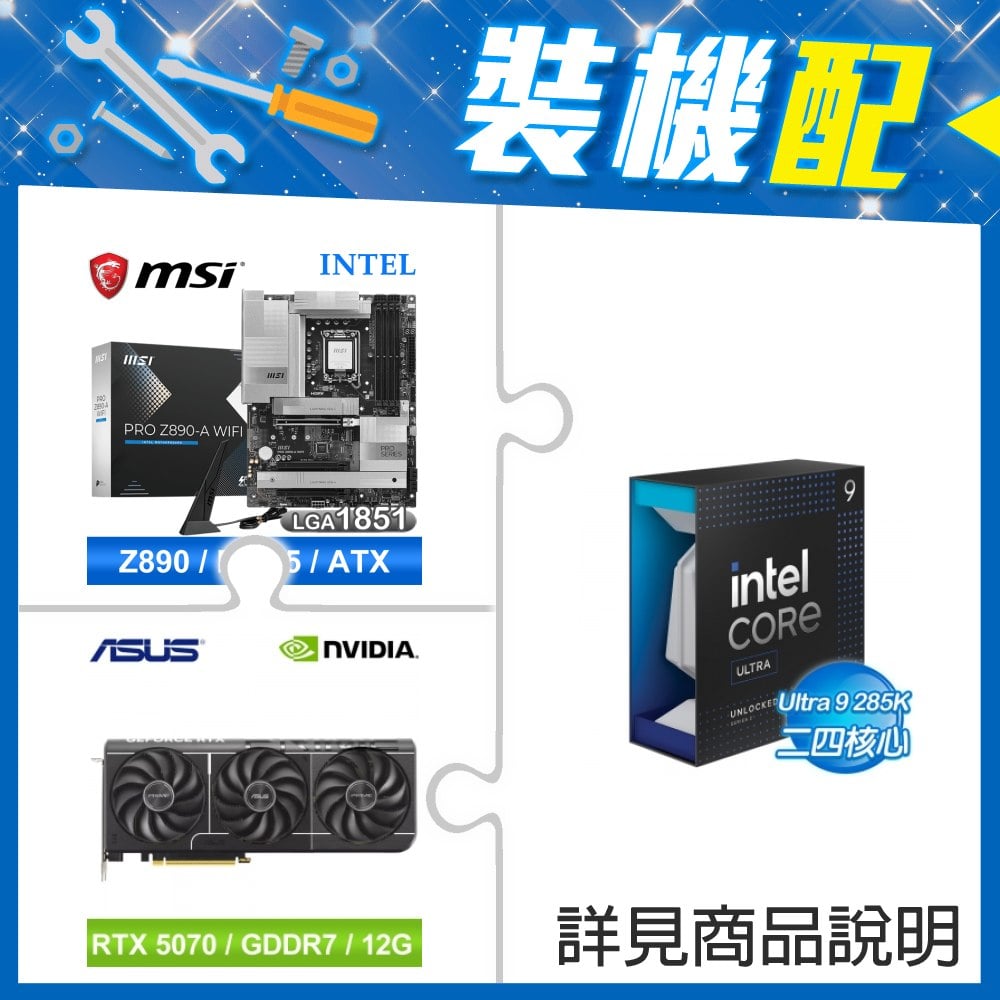 ☆裝機配★ Core U9 285K+微星 PRO Z890-A WIFI D5 ATX主機板+華碩 PRIME-RTX5070-O12G 顯示卡