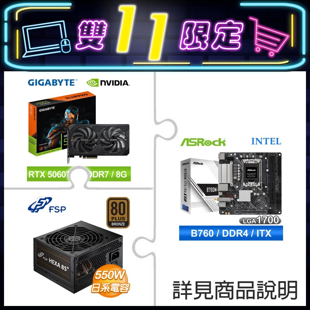 ☆期間限定★ 華擎 B760M-ITX/D4 WiFi ITX主機板+技嘉 RTX 5060 Ti WINDFORCE OC 8G 顯示卡+全漢 聖武士 550W 銅牌 電源供應器