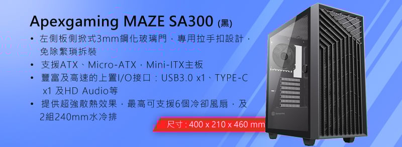 - 電腦機殼:Apexgaming MAZE SA300 ATX 黑
