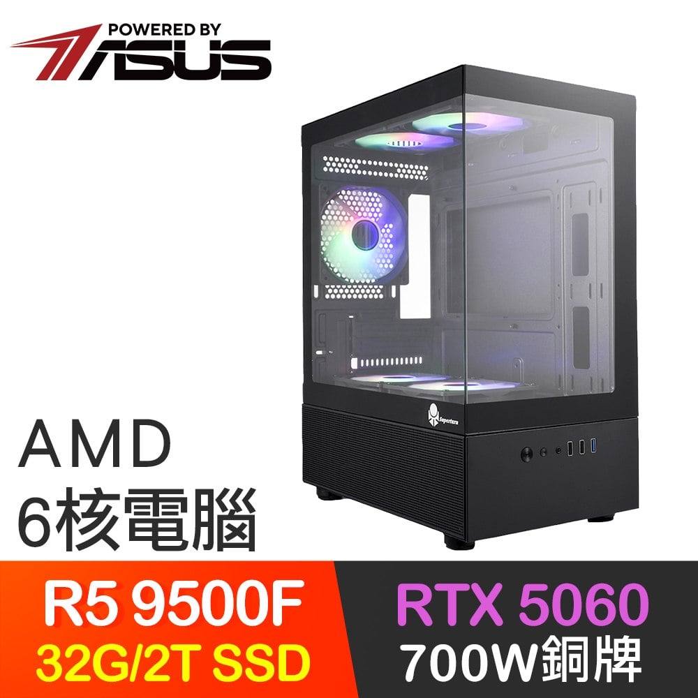 華碩系列【伏魔杖法】R5 9500F 6核 RTX5060Ti 電腦主機(32G/2T SSD)
