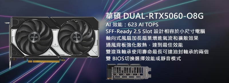 - 顯示卡:華碩 DUAL-RTX5060-O8G