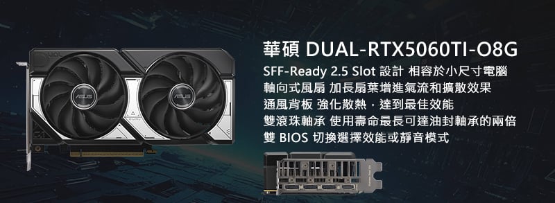 - 顯示卡:華碩 DUAL-RTX5060TI-O8G