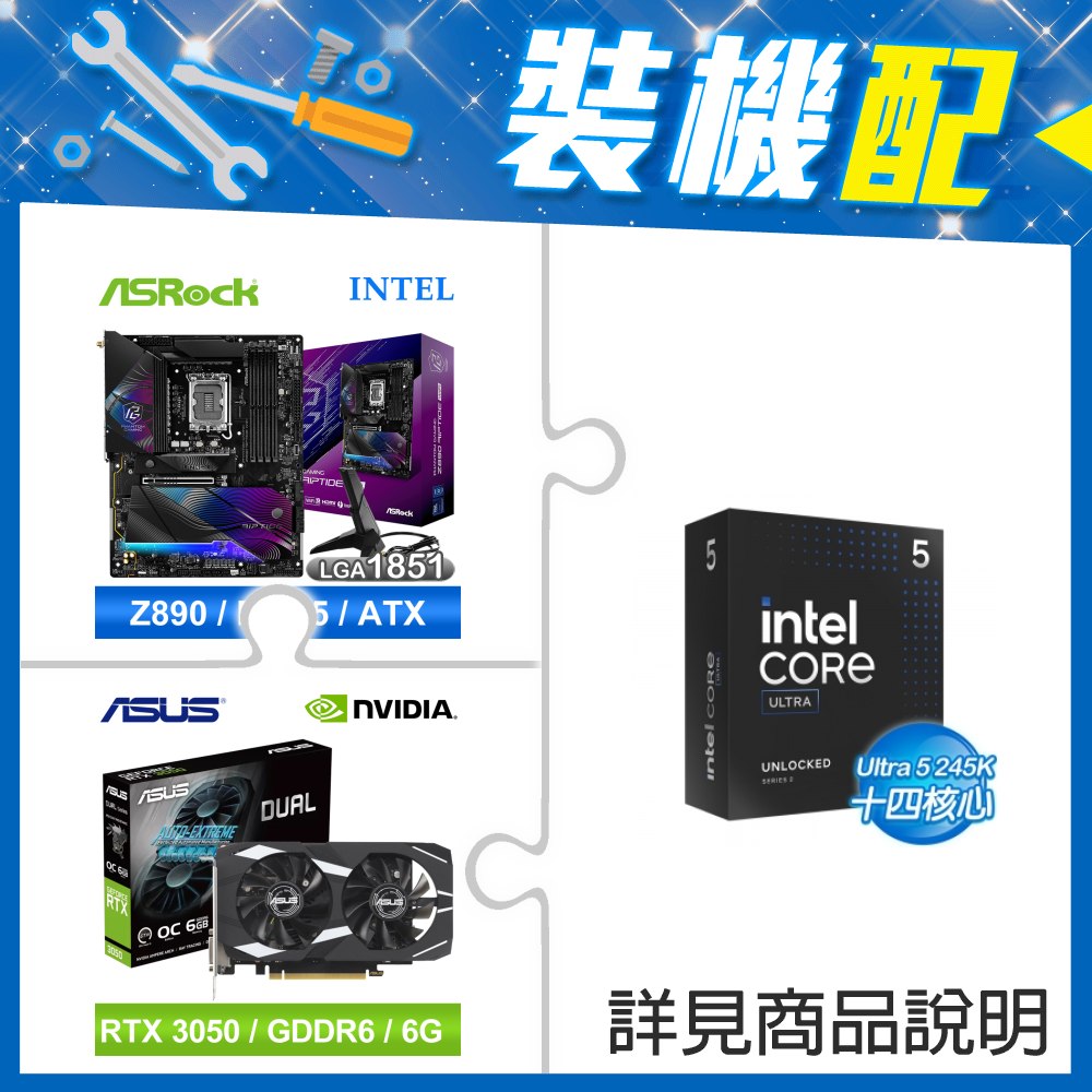 ☆裝機配★ Core U5 245K+華擎 Z890 Riptide WiFi D5 ATX主機板+華碩 DUAL-RTX3050-O6G 顯示卡