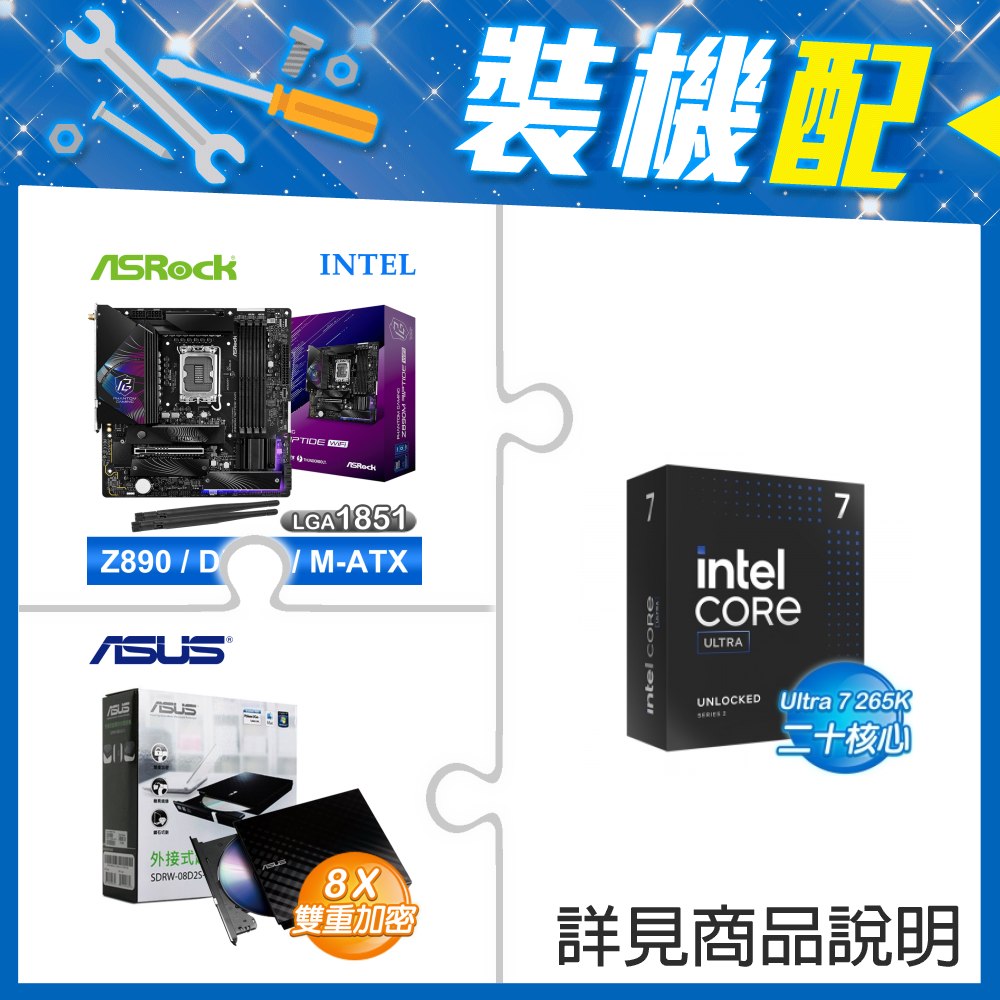 ☆裝機配★ Core U7 265KF+華擎 Z890 Riptide WiFi D5 ATX主機板+華碩 SDRW-08D2S-U 外接式燒錄機《黑》