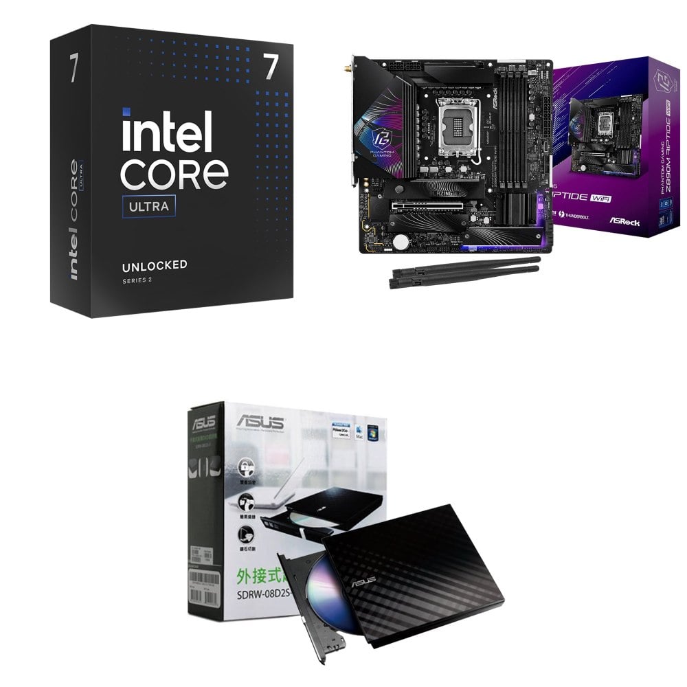 ☆裝機配★ Core U7 265K+華擎 Z890M Riptide WiFi D5 MATX主機板+華碩 SDRW-08D2S-U 外接式燒錄機《黑》