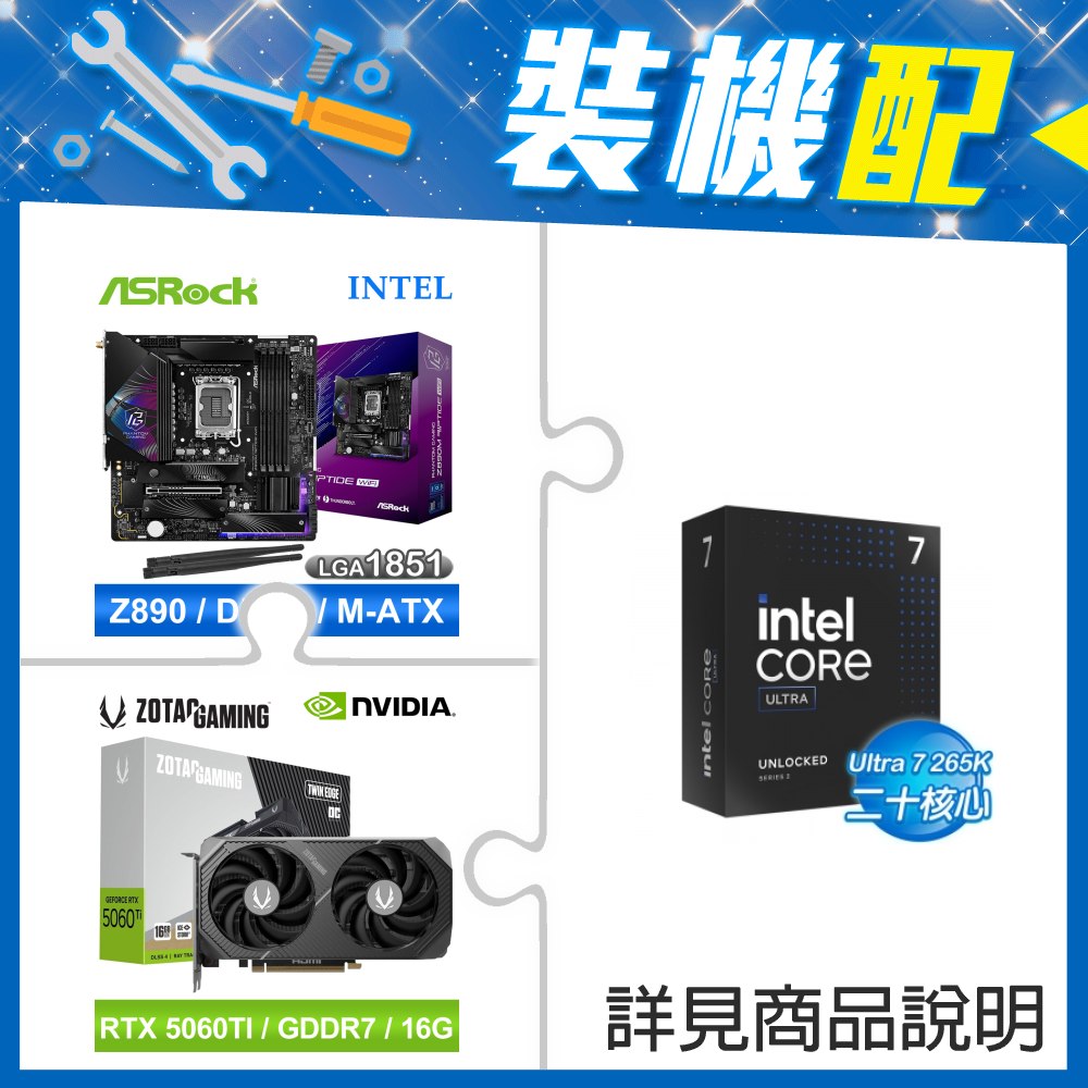 ☆裝機配★ Core U7 265K+華擎 Z890M Riptide WiFi D5 MATX主機板+索泰 RTX 5060 TI 16GB Twin Edge OC 顯示卡