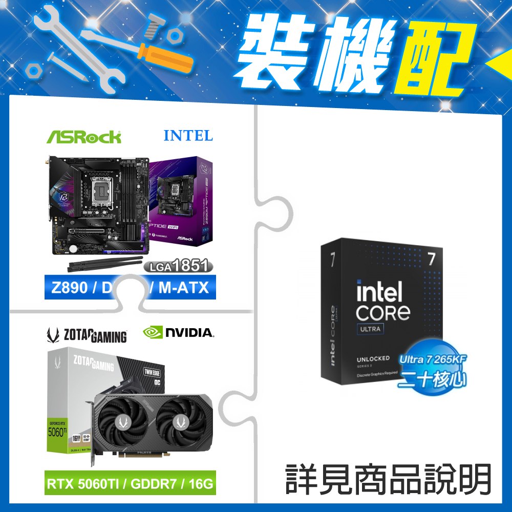 ☆裝機配★ Core U7 265KF+華擎 Z890M Riptide WiFi D5 MATX主機板+索泰 RTX 5060 TI 16GB Twin Edge OC 顯示卡
