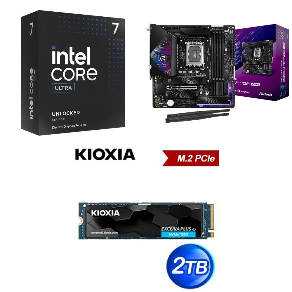 ☆裝機配★ Core U7 265KF+華擎 Z890 Riptide WiFi D5 ATX主機板+鎧俠 EXCERIA PLUS G3 2TB PCIe Gen4x4 SSD