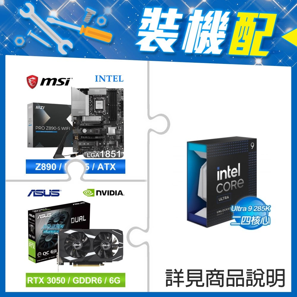 ☆裝機配★ Core U9 285K+微星 PRO Z890-S WIFI D5 ATX主機板+華碩 DUAL-RTX3050-O6G 顯示卡