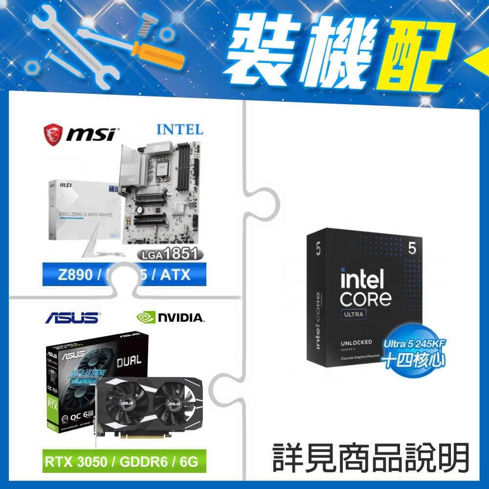 ☆裝機配★ Core U5 245K+微星 PRO Z890-S WIFI WHITE D5 ATX主機板+華碩 DUAL-RTX3050-O6G 顯示卡