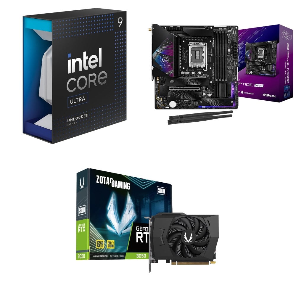 ☆裝機配★ Core U9 285K+華擎 Z890M Riptide WiFi D5 MATX主機板+ZOTAC RTX3050 6G GDDR6 Solo 顯示卡