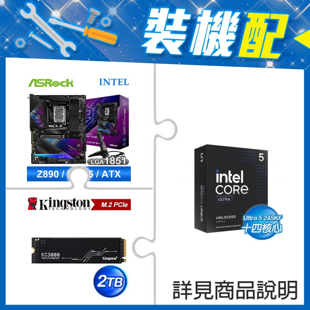 ☆裝機配★ Core U5 245KF+華擎 Z890 Riptide WiFi D5 ATX主機板+金士頓 KC3000 2TB PCIe 4.0 NVMe M.2 SSD