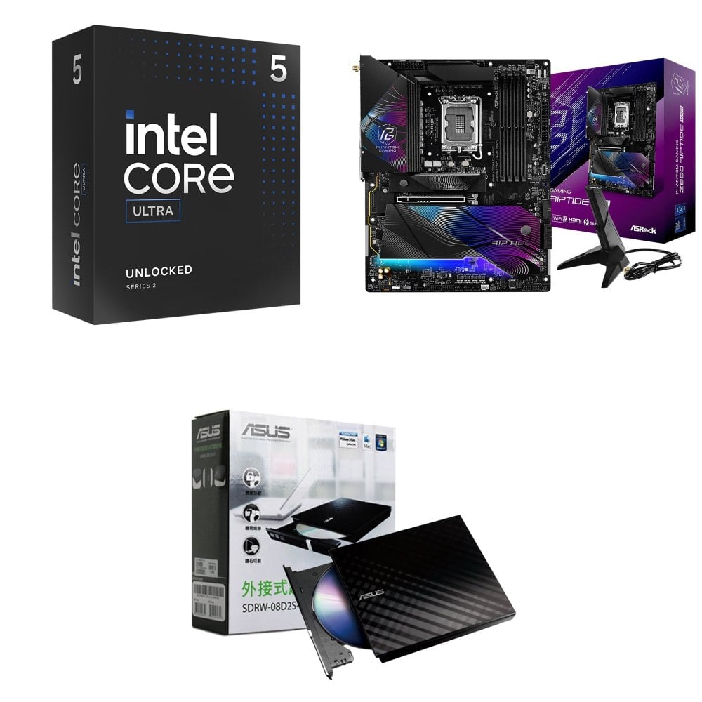 ☆裝機配★ Core U5 245K+華擎 Z890 Riptide WiFi D5 ATX主機板+華碩 SDRW-08D2S-U 外接式燒錄機《黑》