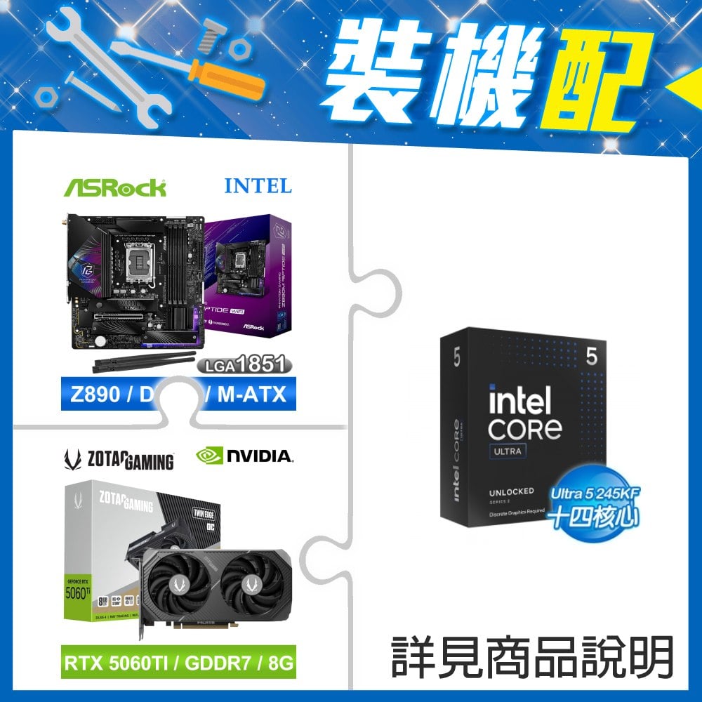 ☆裝機配★ Core U5 245KF+華擎 Z890M Riptide WiFi D5 MATX主機板+索泰 RTX 5060 TI 8GB Twin Edge OC 顯示卡