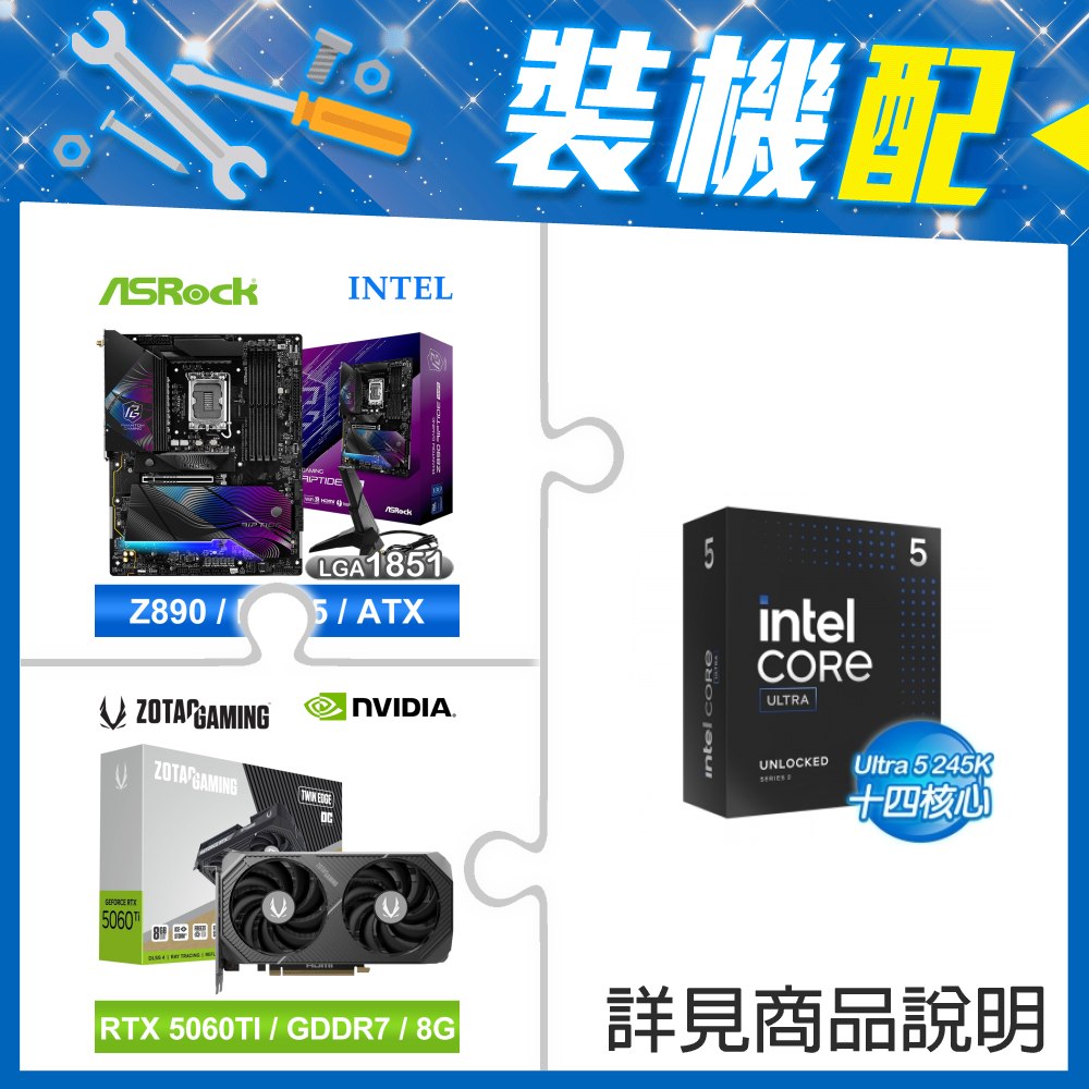 ☆裝機配★ Core U5 245KF+華擎 Z890 Riptide WiFi D5 ATX主機板+索泰 RTX 5060 TI 8GB Twin Edge OC 顯示卡