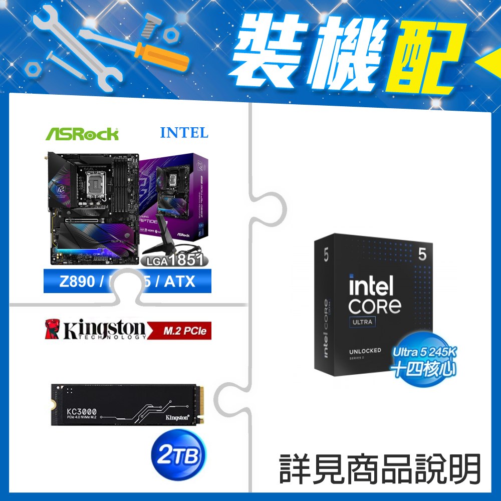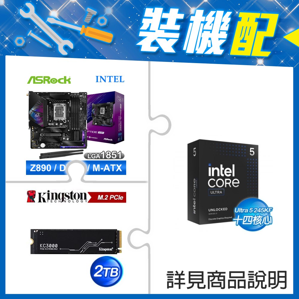 ☆裝機配★ Core U5 245KF+華擎 Z890 Riptide WiFi D5 ATX主機板+金士頓 KC3000 2TB PCIe 4.0 NVMe M.2 SSD