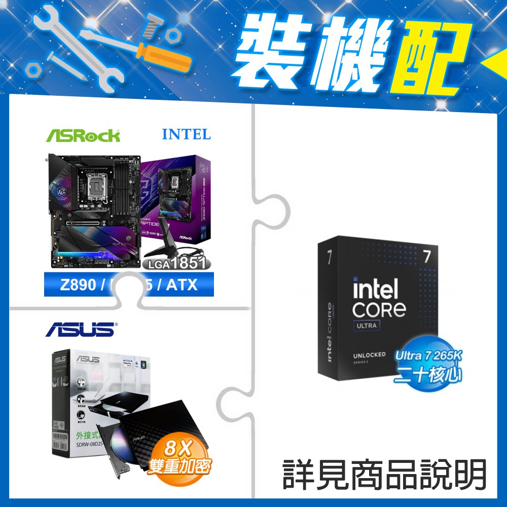 ☆裝機配★ Core U7 265K+華擎 Z890 Riptide WiFi D5 ATX主機板+華碩 SDRW-08D2S-U 外接式燒錄機《黑》