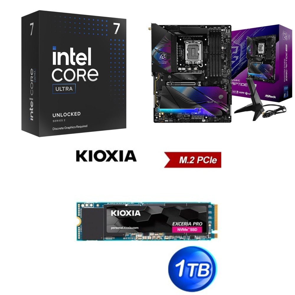 ☆裝機配★ Core U7 265KF+華擎 Z890 Riptide WiFi D5 ATX主機板+鎧俠 EXCERIA PRO 1TB PCIe Gen4x4 SSD