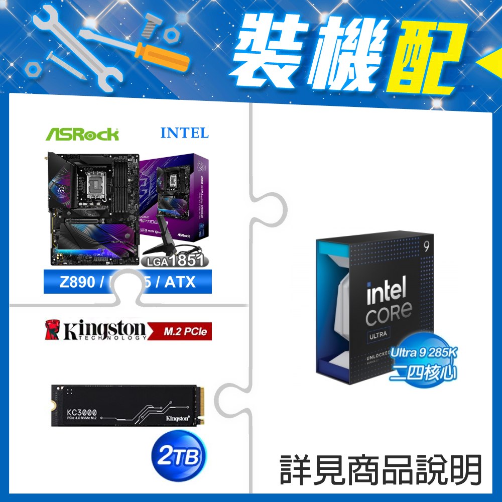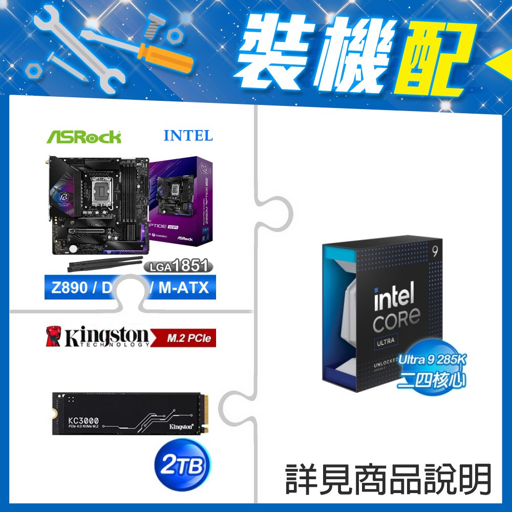 ☆裝機配★ Core U9 285K+華擎 Z890 Riptide WiFi D5 ATX主機板+金士頓 KC3000 2TB PCIe 4.0 NVMe M.2 SSD
