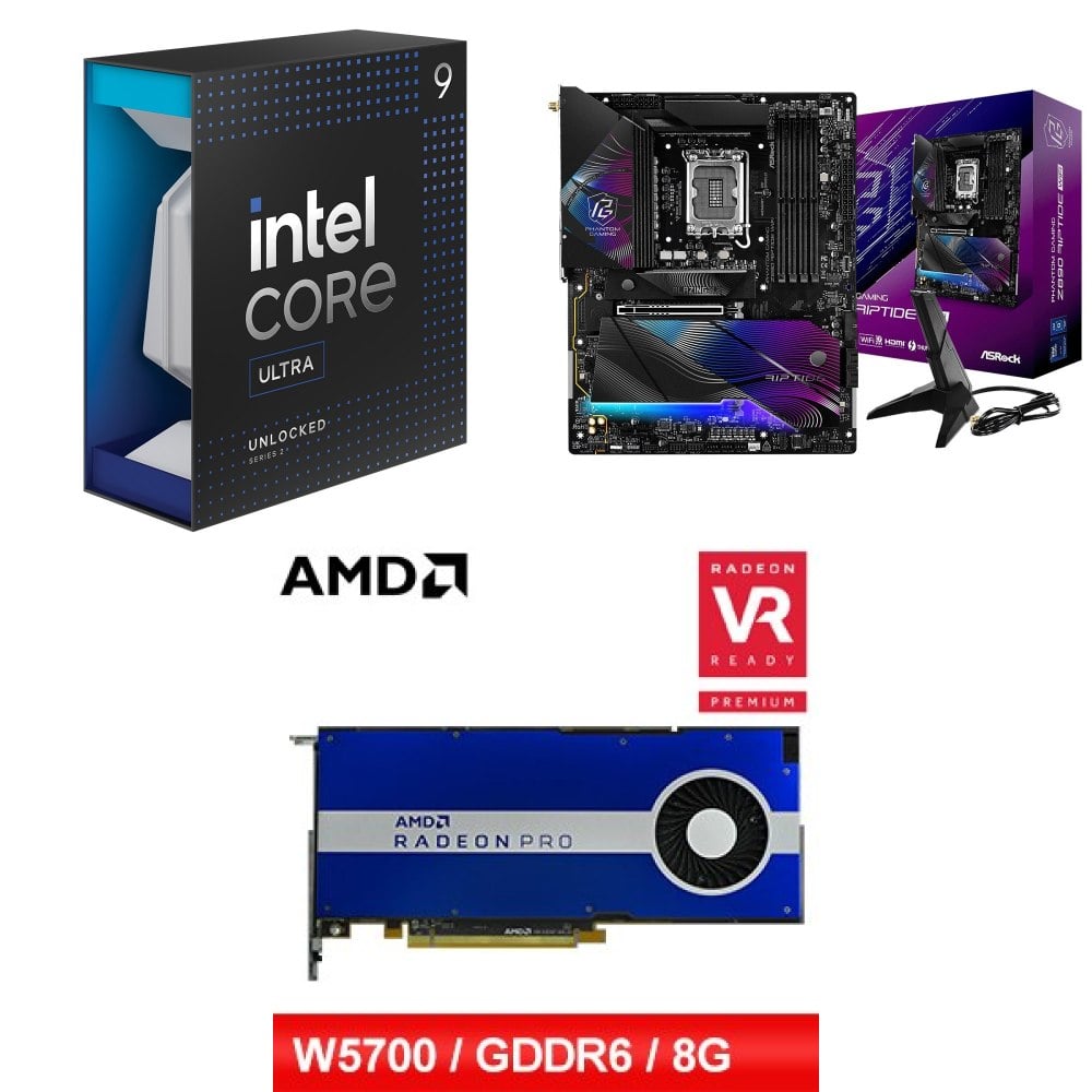 ☆裝機配★ Core U9 285K+華擎 Z890 Riptide WiFi D5 ATX主機板+AMD RadeonPro W5700 8G 256bit專業繪圖卡