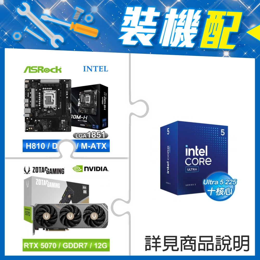 ☆裝機配★ Core U5 225+華擎 H810M-H MATX主機板+索泰 RTX 5070 SOLID OC 12G 顯示卡