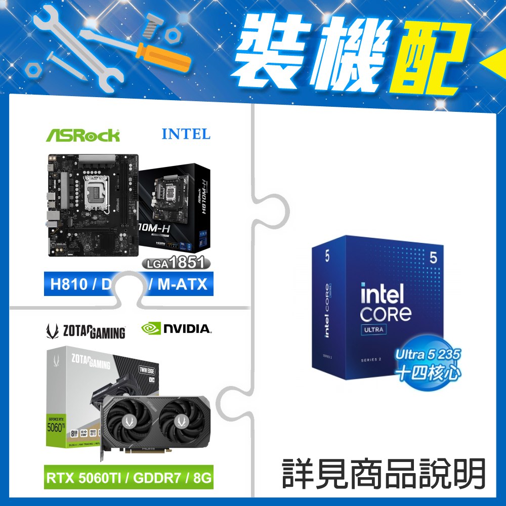 ☆裝機配★ Core U5 235+華擎 H810M-H MATX主機板+索泰 RTX 5060 TI 8GB Twin Edge OC 顯示卡