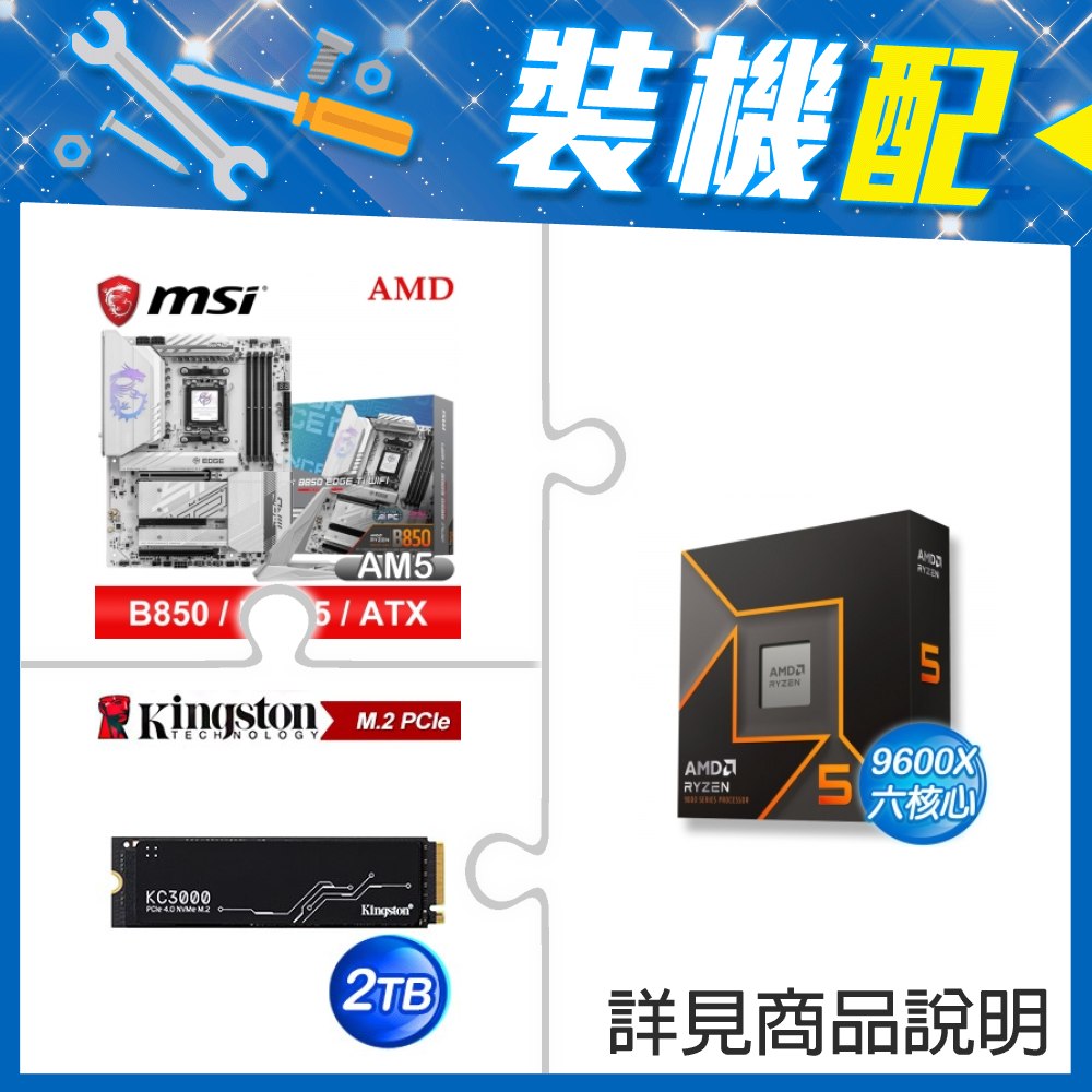 ☆裝機配★ AMD R5 9600X+微星 MPG B850 EDGE TI WIFI ATX主機板+金士頓 KC3000 2TB PCIe 4.0 NVMe M.2 SSD