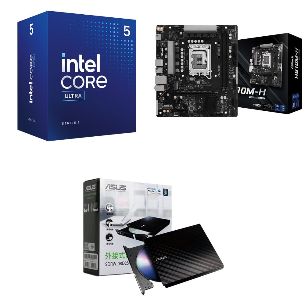 ☆裝機配★ Core U5 235+華擎 H810M-H MATX主機板+華碩 SDRW-08D2S-U 外接式燒錄機《黑》