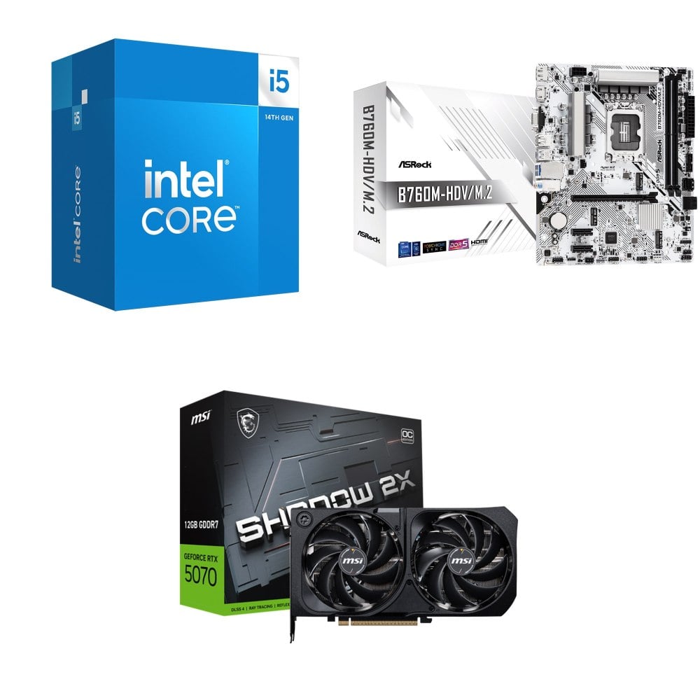 ☆裝機配★ i5-14400+華擎 B760M-HDV D5 MATX主機板+微星 RTX 5070 12G SHADOW 2X OC 顯示卡