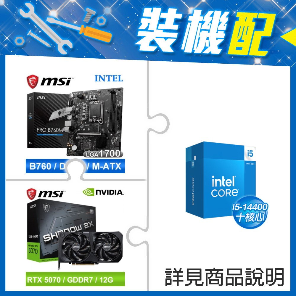 ☆裝機配★ i5-14400F+微星 PRO B760M-E D5 MATX主機板+微星 RTX 5070 12G SHADOW 2X OC 顯示卡