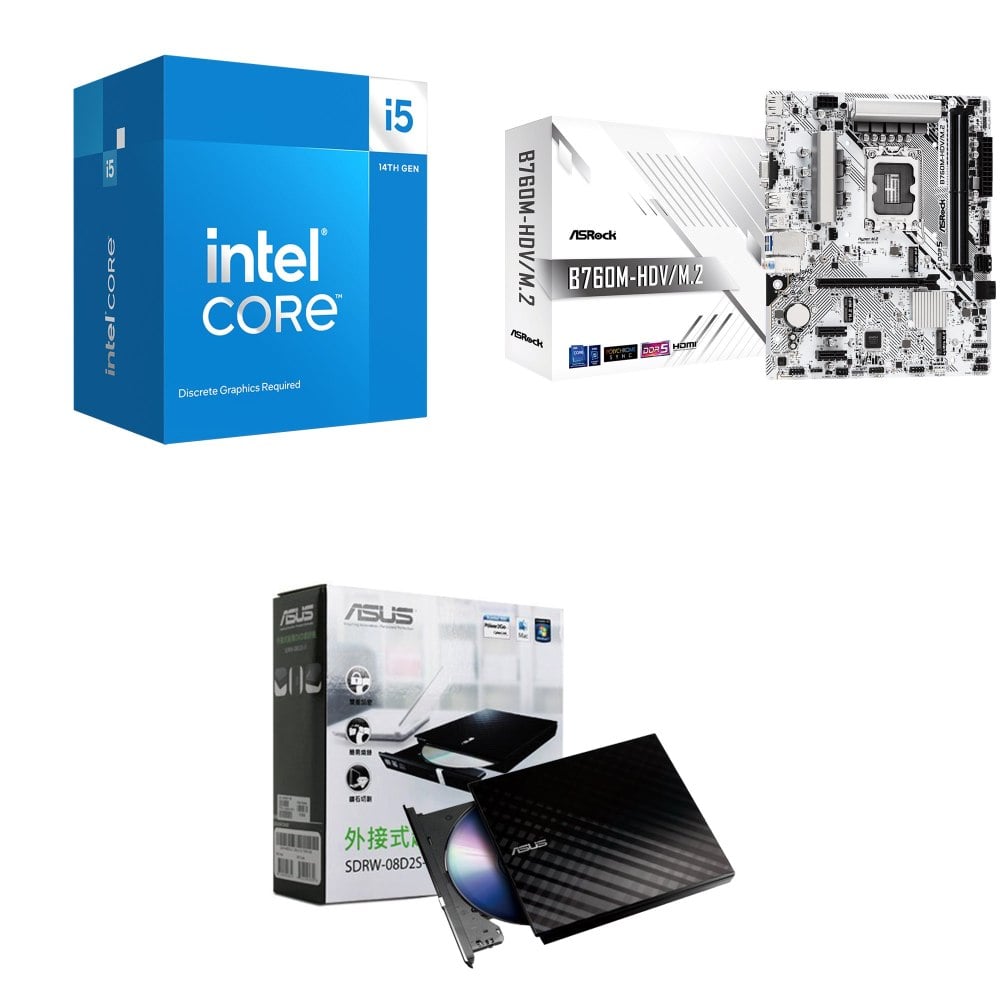 ☆裝機配★ i5-14400F+華擎 B760M-HDV D5 MATX主機板+華碩 SDRW-08D2S-U 外接式燒錄機《黑》